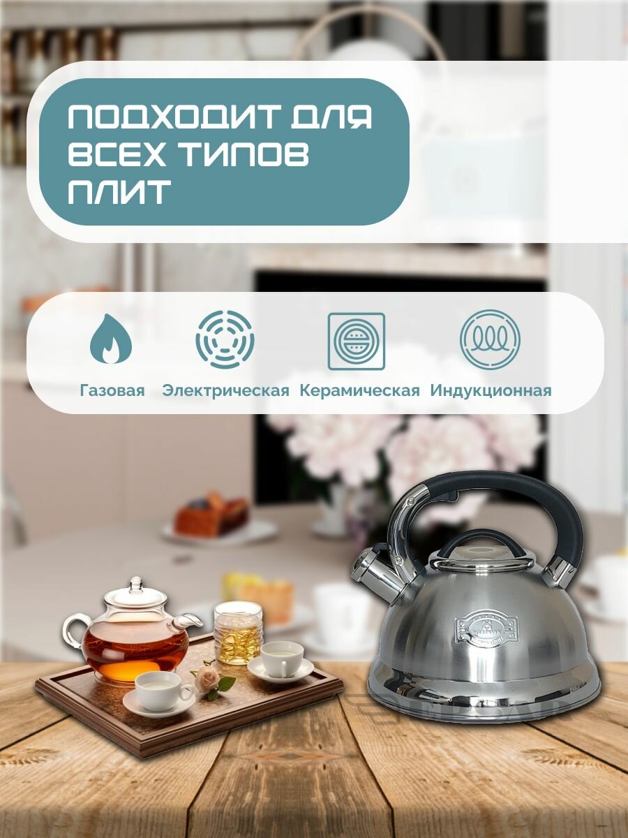 | Дополнительная информация | Чайник, Чайник со свистком, Чайник сталь, Чайник нержавейка, Чайник для плиты, Чайник для газовой плиты, Чайник 3 литра, Чайник для индукционной плиты, Чайник для похода, Чайник для пикника, Чайник для подарка |