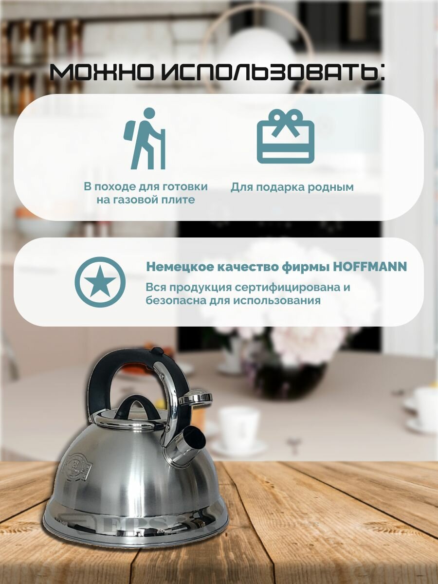 Купить Чайник со свистком 3,3л Hoffmann металлический из нержавеющей стали с доставкой по всей России.