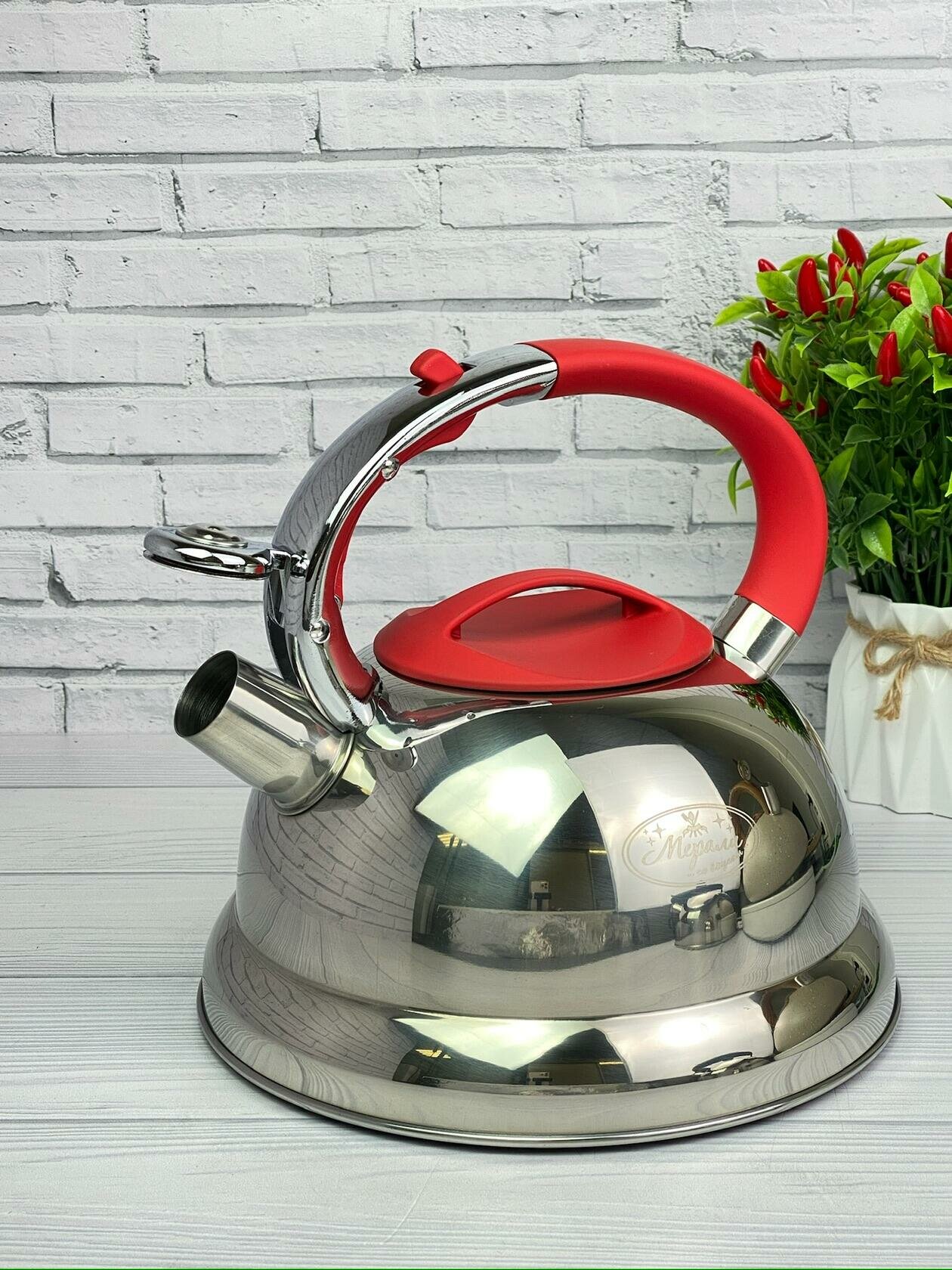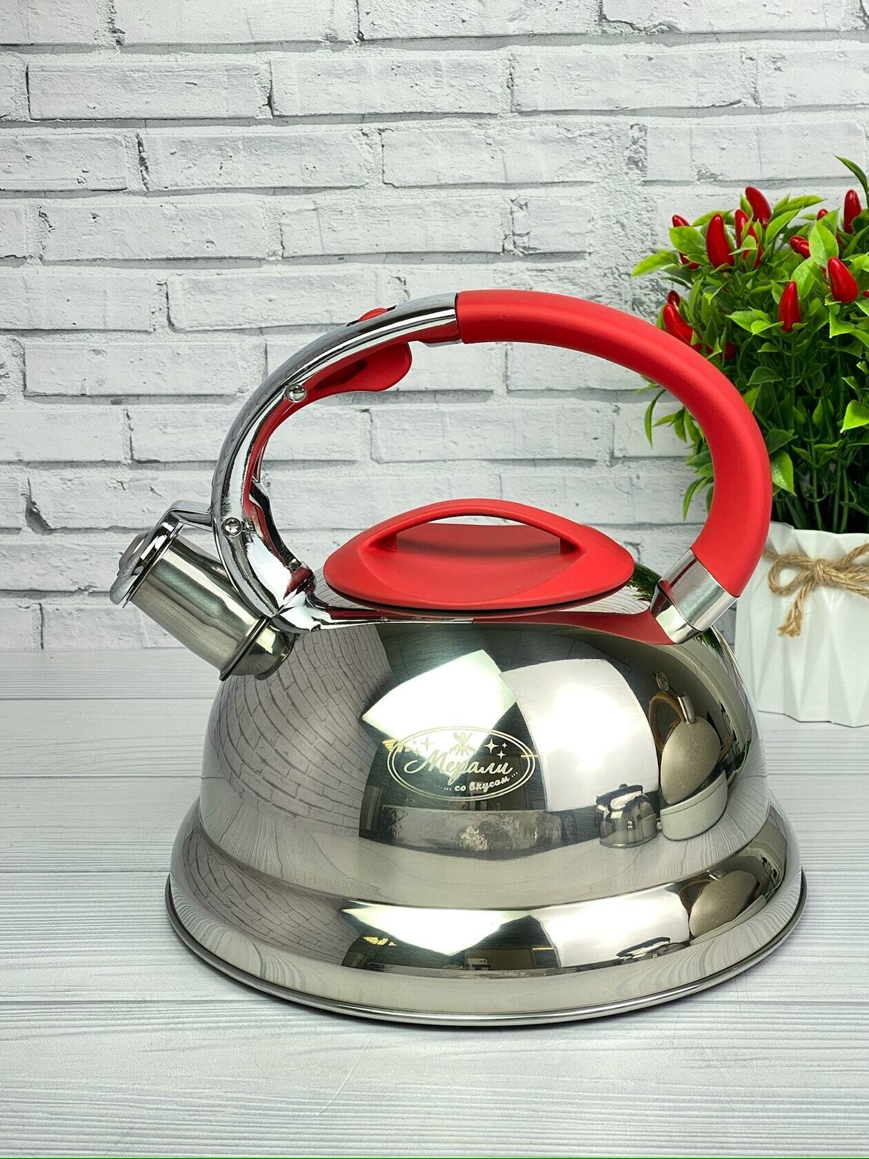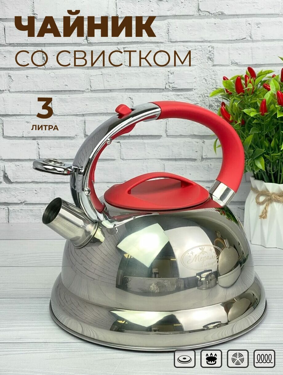 Чайник со свистком из нержавеющей стали 3 литра – идеальное решение для вас. Чайник для плиты имеет бакелитовую ручку с прорезиненным покрытием с рычагом для открывания носика. Эргономичная комбинированная фиксированная ручка с покрытием soft-touch обеспечивает удобство использования.