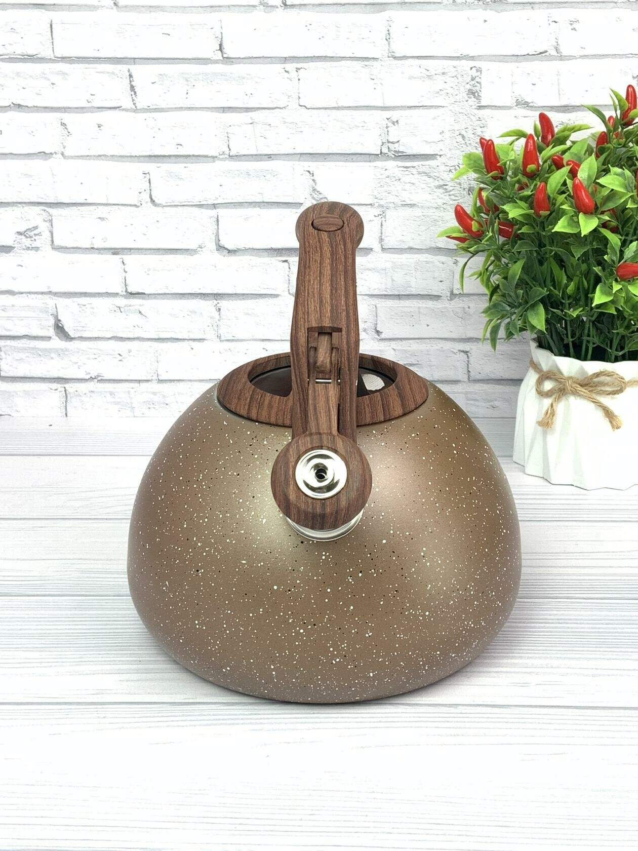 Чайник со свистком из нержавеющей стали 3 литра - идеальное решение для вас. Чайник для плиты имеет бакелитовую ручку с прорезиненным покрытием с рычагом для открывания носика. Эргономичная комбинированная фиксированная ручка с покрытием "soft-touch".