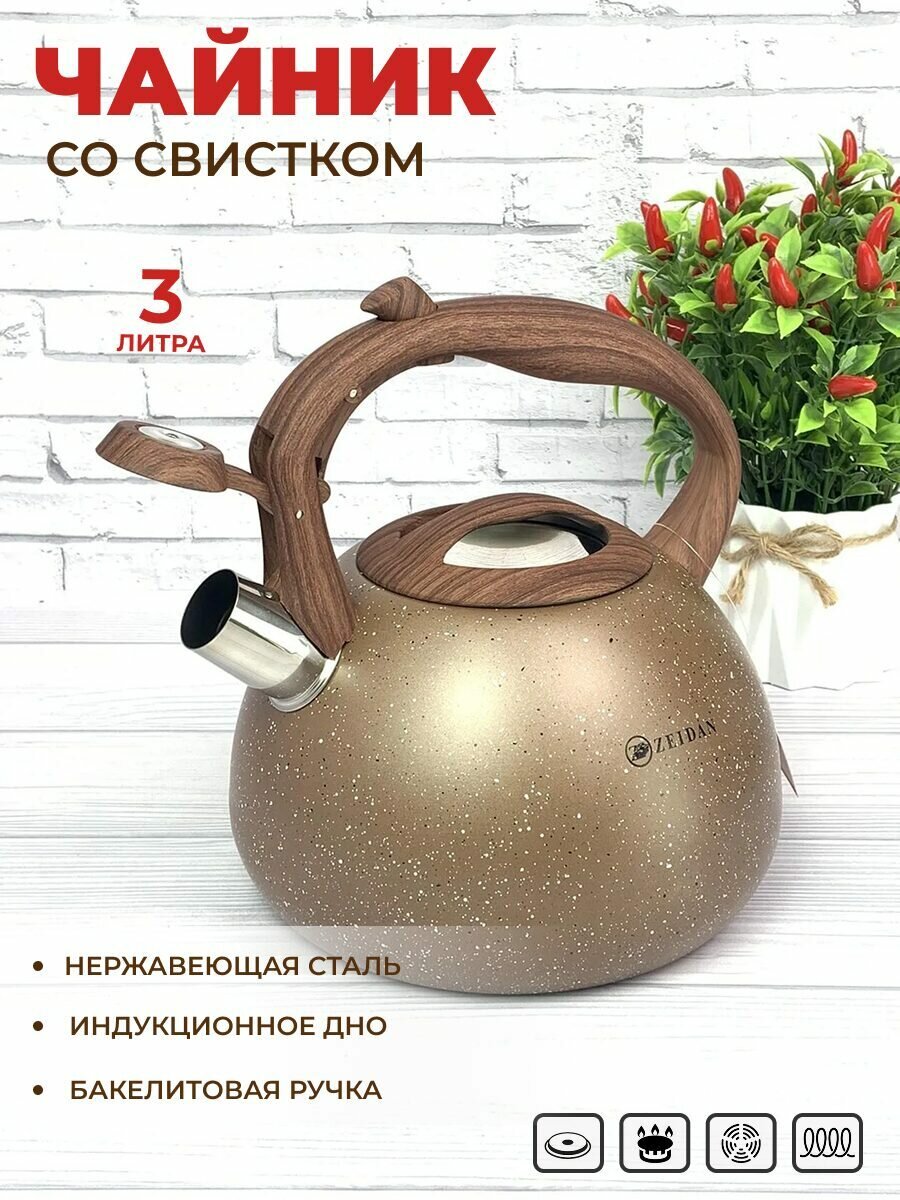 Чайник со свистком Zeidan 3 литра из нержавеющей стали для газовой электрической и индукционной плиты Zeidan.