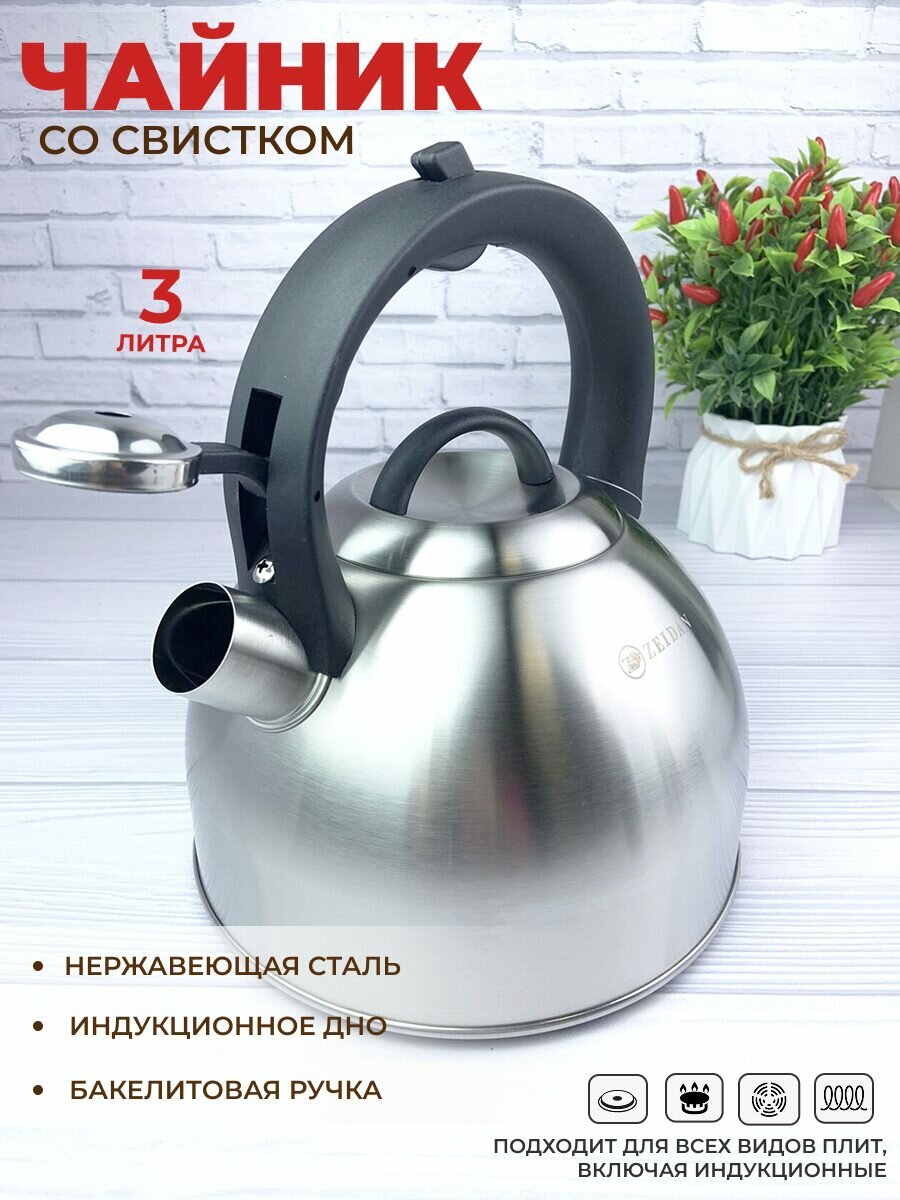 Чайник со свистком Zeidan 3 литра из нержавеющей стали для газовой, электрической и индукционной плиты. Чайник со свистком из нержавеющей стали 3 литра - идеальное решение для вас.