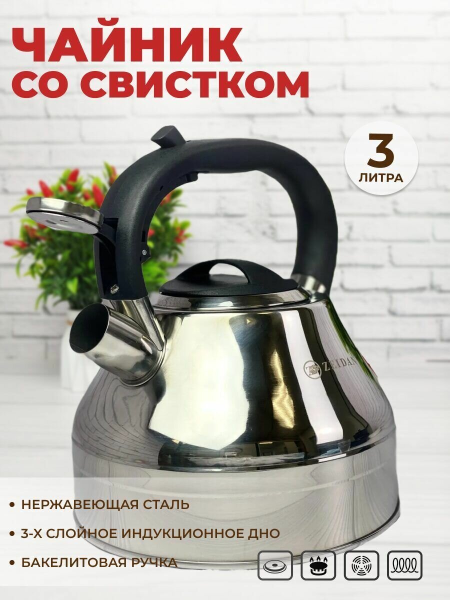Чайник со свистком 3 литра из нержавеющей стали ZEIDAN для всех типов плит