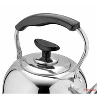 Чайник изготовлен из высококачественной нержавеющей стали. Изделия из нержавеющей стали не окисляются и не впитывают запахи, благодаря чему вы всегда получите натуральный, насыщенный вкус и аромат напитков. Капсулированное дно с прослойкой из алюминия обеспечивает наилучшее распределение тепла. Эргономичная ручка выполнена из нержавеющей стали с бакелитовой вставкой и удобно лежит в руке. Носик чайника оснащен свистком, который позволяет контролировать процесс кипячения или подогрева воды. Поверхность чайника серебристая с зеркальным блеском. Эстетичный и функциональный, с классическим дизайном, чайник будет оригинально смотреться на любой кухне. Подходит для использования на всех типах плит, кроме индукционных. Подходит для мытья в посудомоечной машине.