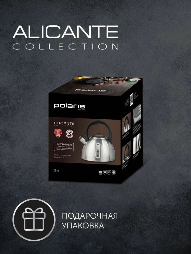 Купить Чайник со свистком Polaris 3 л Alicante-3LN, нержавеющая сталь, Серый с доставкой по всей России. Чайник со свистком Polaris 3 л Alicante-3LN, нержавеющая сталь, Серый: сравнение цен, характеристики, фото, актуальное наличие и цены.