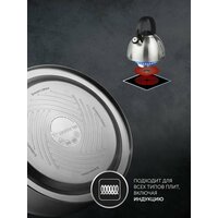Корпус изделия выполнен из медицинской нержавеющей стали 18/10, что обеспечивает защиту от коррозии и значительно увеличивает срок службы посуды, что делает ее идеальным материалом для использования в производстве кухонной посуды. Также нержавеющая сталь предотвращает размножение вредных микроорганизмов, благодаря антибактериальным свойствам материала в отличие от алюминиевых, эмалированных и металлических изделий, и обеспечивает отсутствие посторонних запахов и привкусов в воде, что позволит насладиться идеальным вкусом чая, кофе или какао. Подходит для использования на индукционной, электрической, керамической и газовой плите.