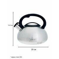 Чайник ARDI Küche AR-313, со свистком, 3 л. Стильный прибор, который способен вписаться в любой кухонный интерьер. С его помощью вы сможете в два счета нагреть нужное вам количество воды для чаепития или приготовления блюда. Чайник ARDI Küche AR-313, выполнен из высококачественная нержавеющая сталь c зеркальной полировкой.