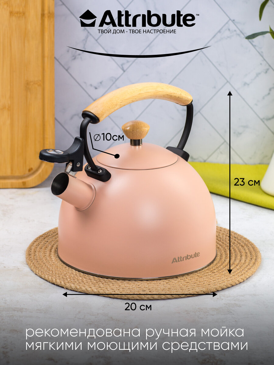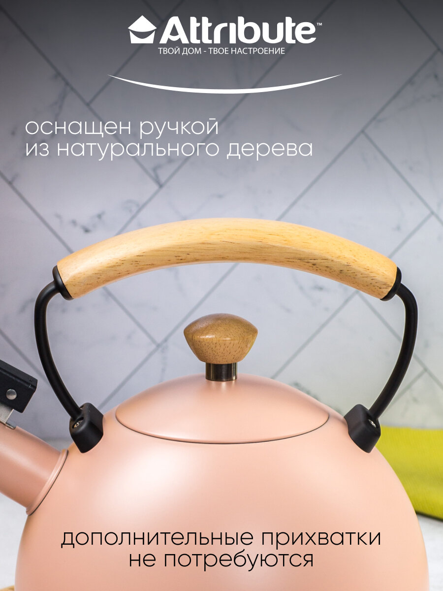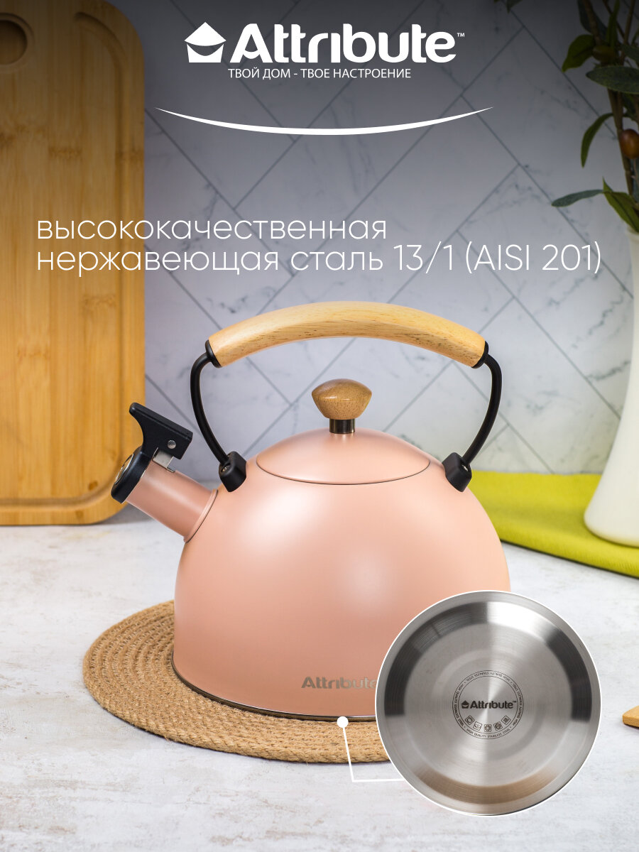 Чайник со свистком Attribute SCANDINAVIA 2.5л розовый, 1 штука, для всех типов плит: сравнение цен, характеристики, фото, актуальное наличие и цены.