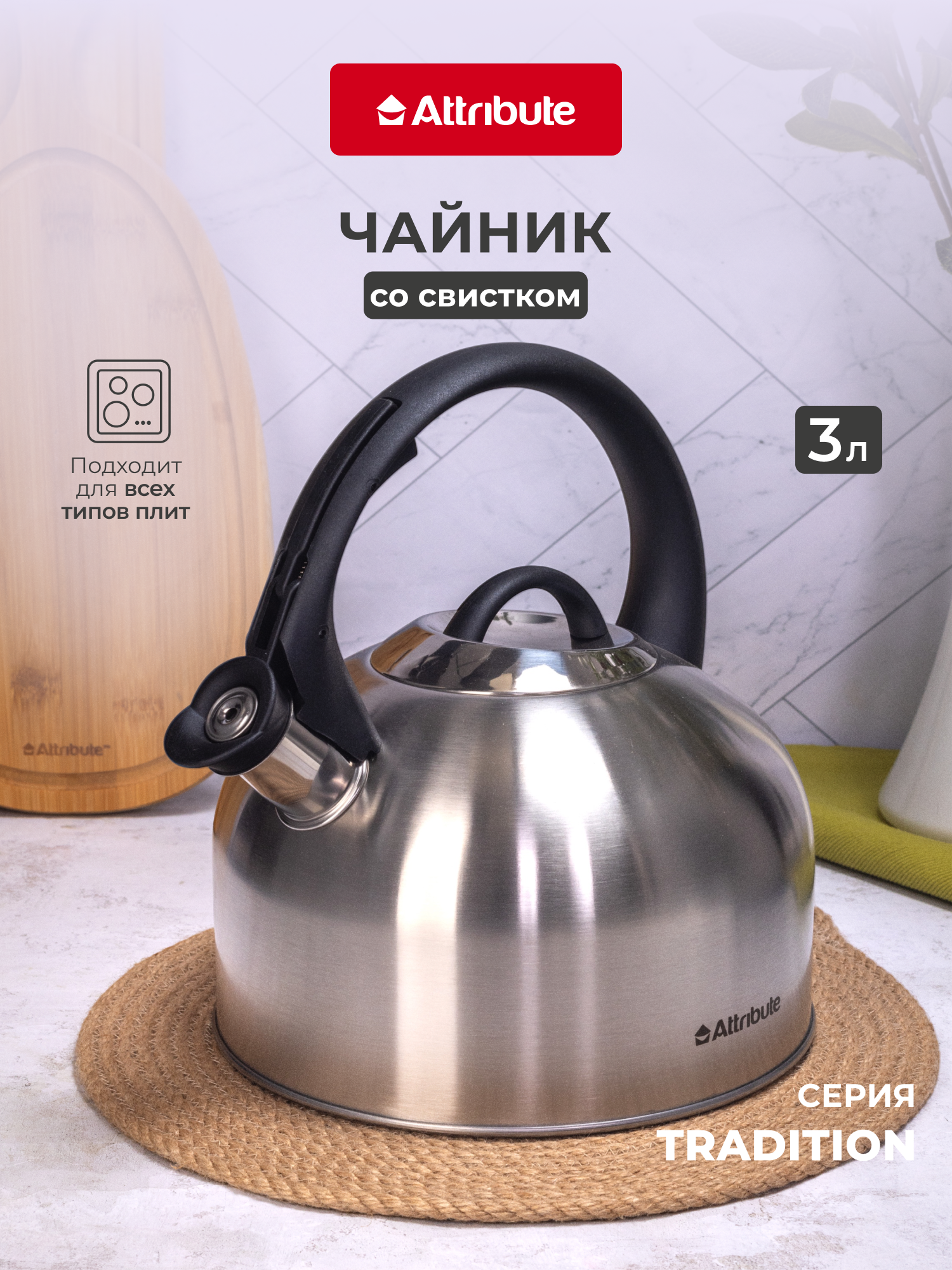 Купить Чайник со свистком Attribute Tradition, из нержавеющей стали, на 3 л. с доставкой по всей России. Чайник со свистком Attribute Tradition, из нержавеющей стали, на 3 л.: сравнение цен, характеристики, фото, актуальное наличие и цены.