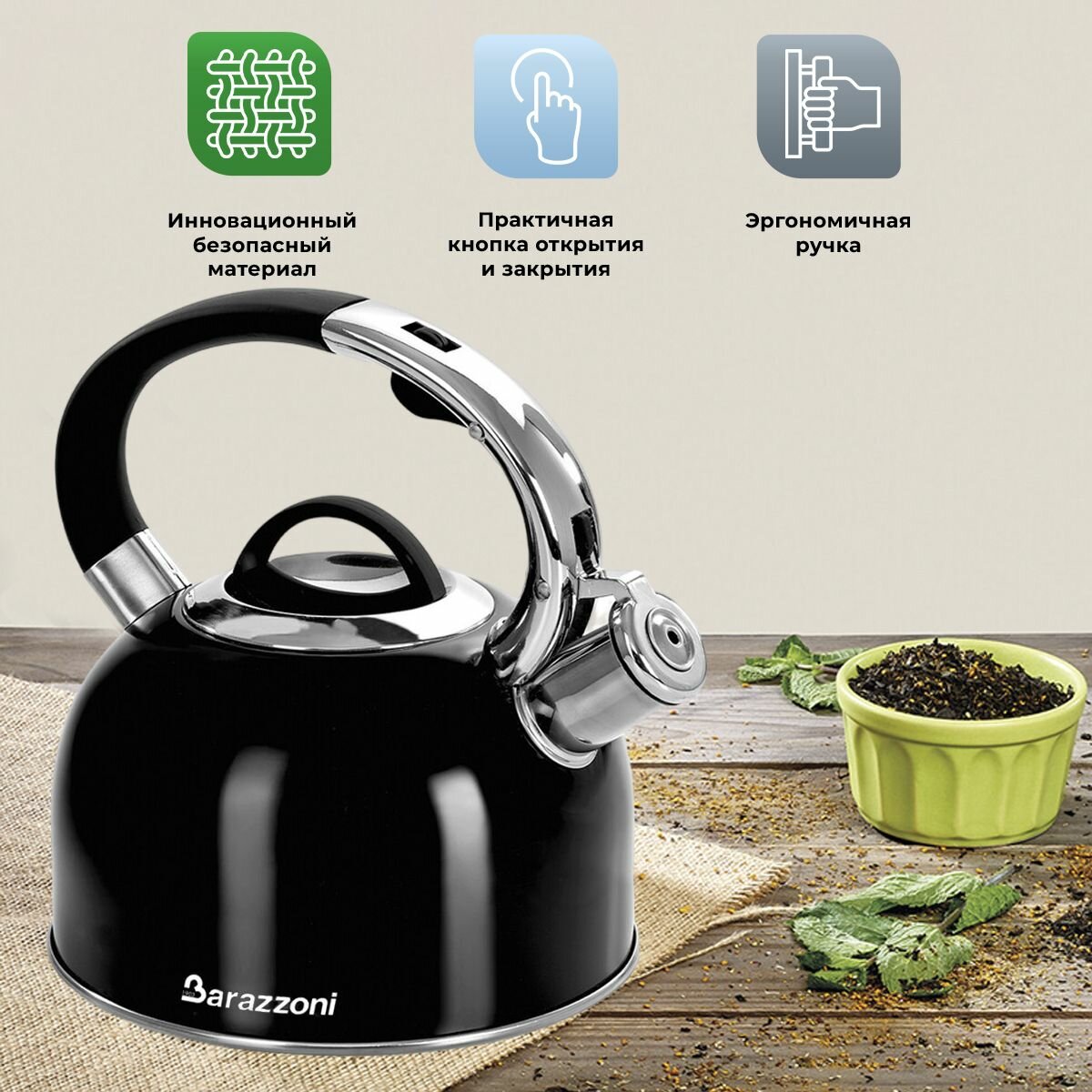 Купить Чайник со свистком Barazzoni 2.5 л, черный с доставкой по всей России. Чайник со свистком Barazzoni 2.5 л, черный: сравнение цен, характеристики, фото, актуальное наличие и цены.