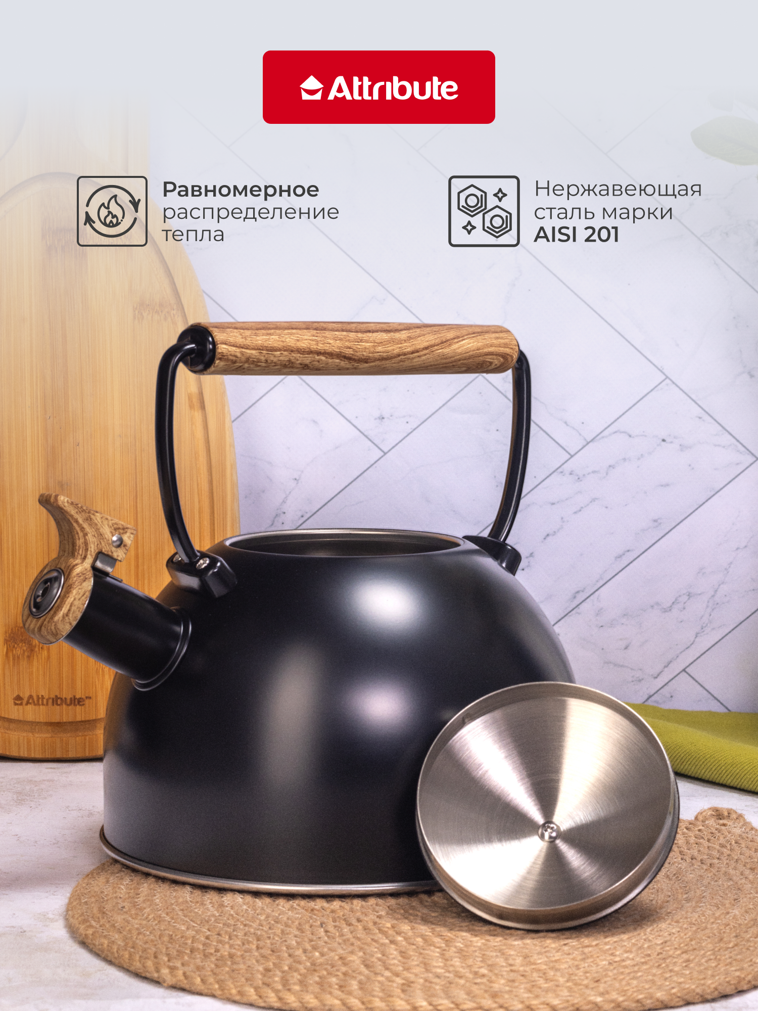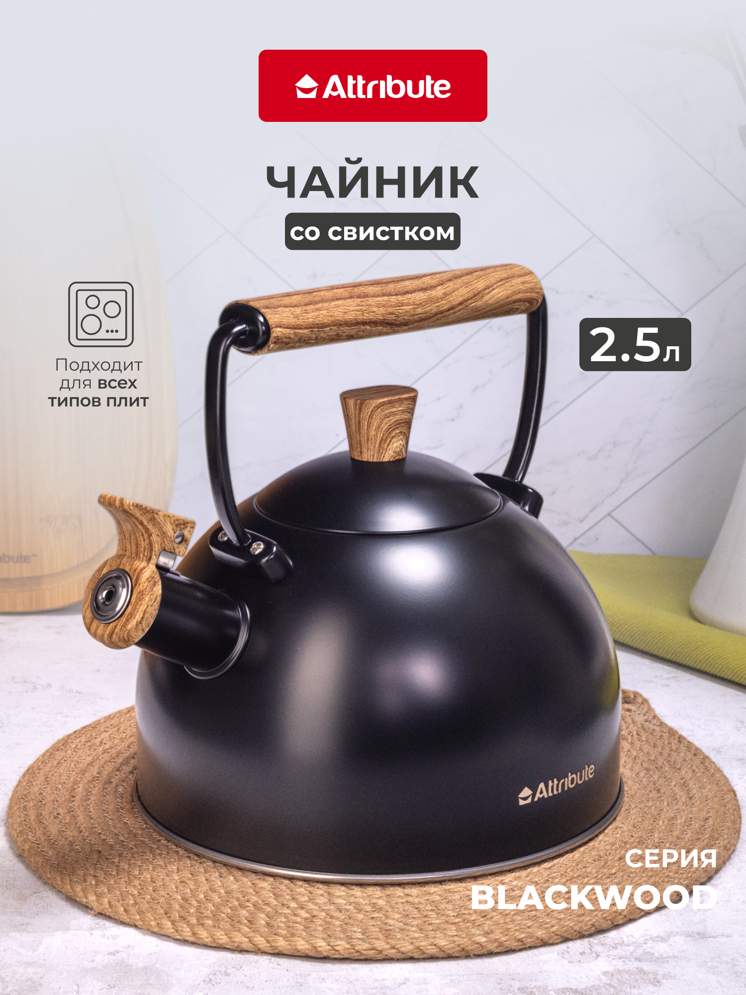 Купить Чайник со свистком ATTRIBUTE BLACKWOOD, на 2.5 л, из нержавеющей стали с доставкой по всей России. Чайник со свистком ATTRIBUTE BLACKWOOD, на 2.5 л, из нержавеющей стали: сравнение цен, характеристики, фото, актуальное наличие и цены.