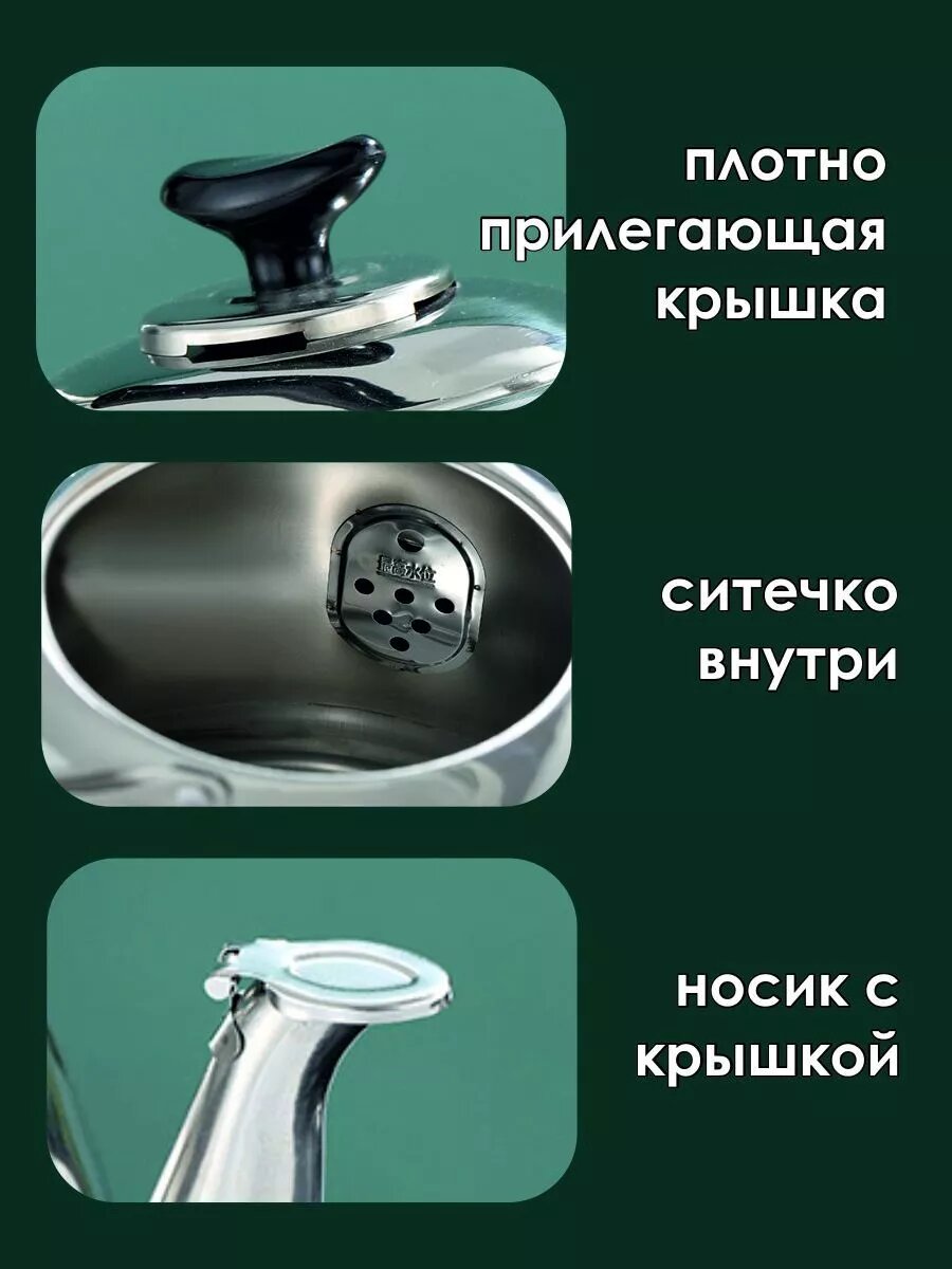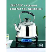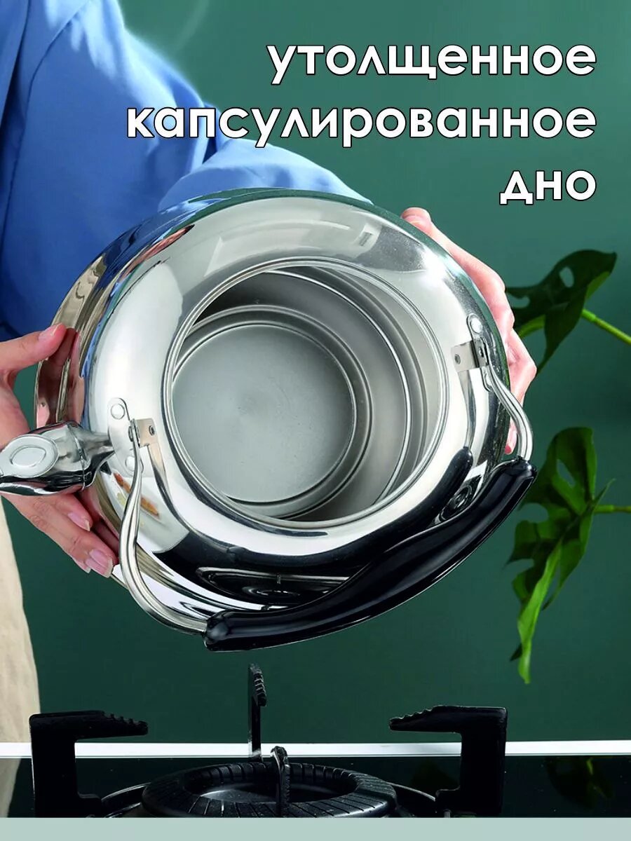 Современный металлический чайник со свистком - это не просто устройство для приготовления чая, это целый комплекс преимуществ, который упрощает жизнь и делает ее комфортнее. Наш чайник изготовлен из нержавеющей стали высокого качества, что обеспечивает надежность и долговечность. Чайник может использоваться на газовых, электрических и индукционных плитах, что делает его универсальным и практичным для любой кухни. Вы можете использовать его дома или на природе, в походах или на пикнике. С помощью свистка вы всегда будете знать, когда вода закипела, что делает использование нашего чайника еще более удобным и безопасным. Этот чайник - идеальное решение для тех, кто ценит качество и надежность, комфорт и удобство. Купите наш металлический чайник со свистком сегодня, и он станет вашим верным помощником на кухне. Наслаждайтесь вкусным чаем в любое время дня и в любом месте - в вашем мегаполисе или на природе!