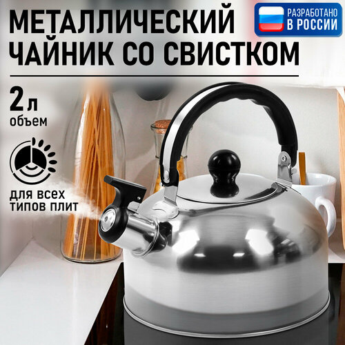 со свистком, 2л. (полезный 1,5л.), нерж. сталь, подвижная ручка, подходит для всех типов плит.