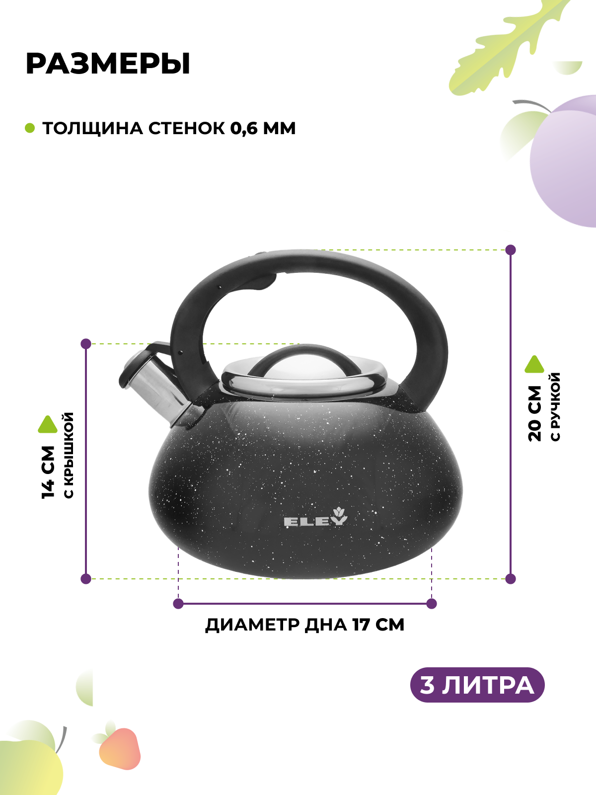 Чайник со свистком и ручкой из нейлона 3л ELEY из нержавеющей стали для всех типов плит: сравнение цен, характеристики, фото, актуальное наличие и цены.