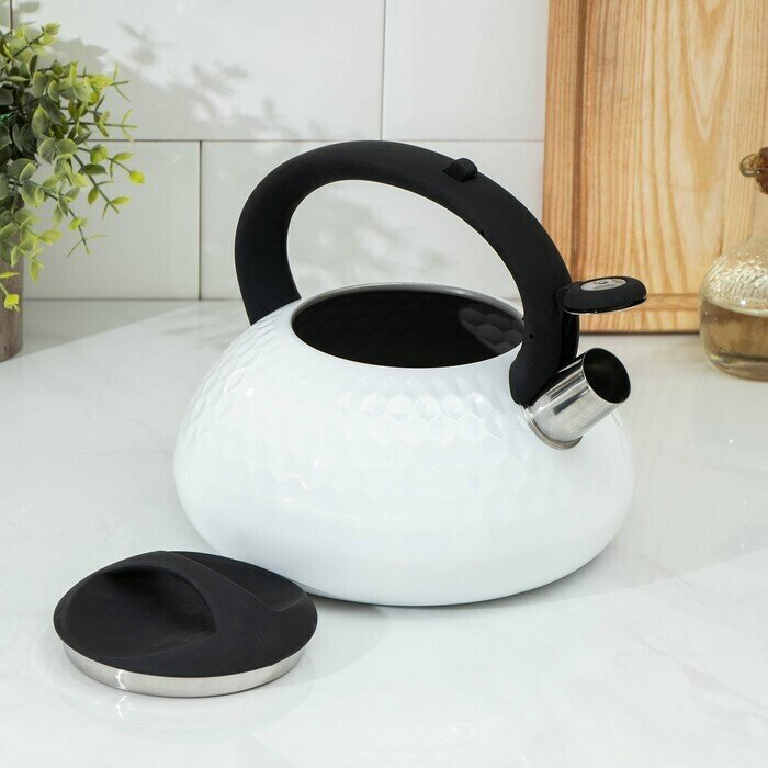 Чайник со свистком из нержавеющей стали Magistro Glow, 3 л, индукция, ручка soft-touch, цвет белый: сравнение цен, характеристики, фото, актуальное наличие и цены.