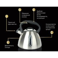 Купить Чайник со свистком из нержавеющей стали со шкалой уровня воды Rashel 3л для газовой, электрической и индукционной плиты с доставкой по всей России.