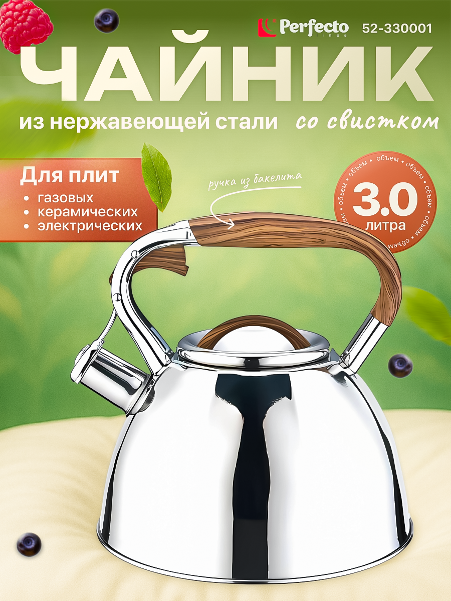 Чайник со свистком, нержавеющая сталь PERFECTO LINEA Ceylon 3 л (52-330001): сравнение цен, характеристики, фото, актуальное наличие и цены.