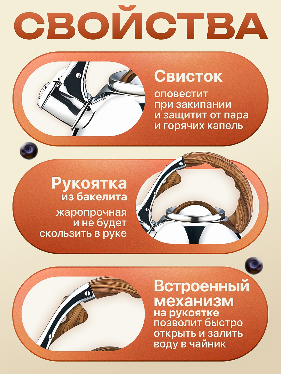 | Особенности | со свистком, термоизолированная ручка, фильтр в носике |