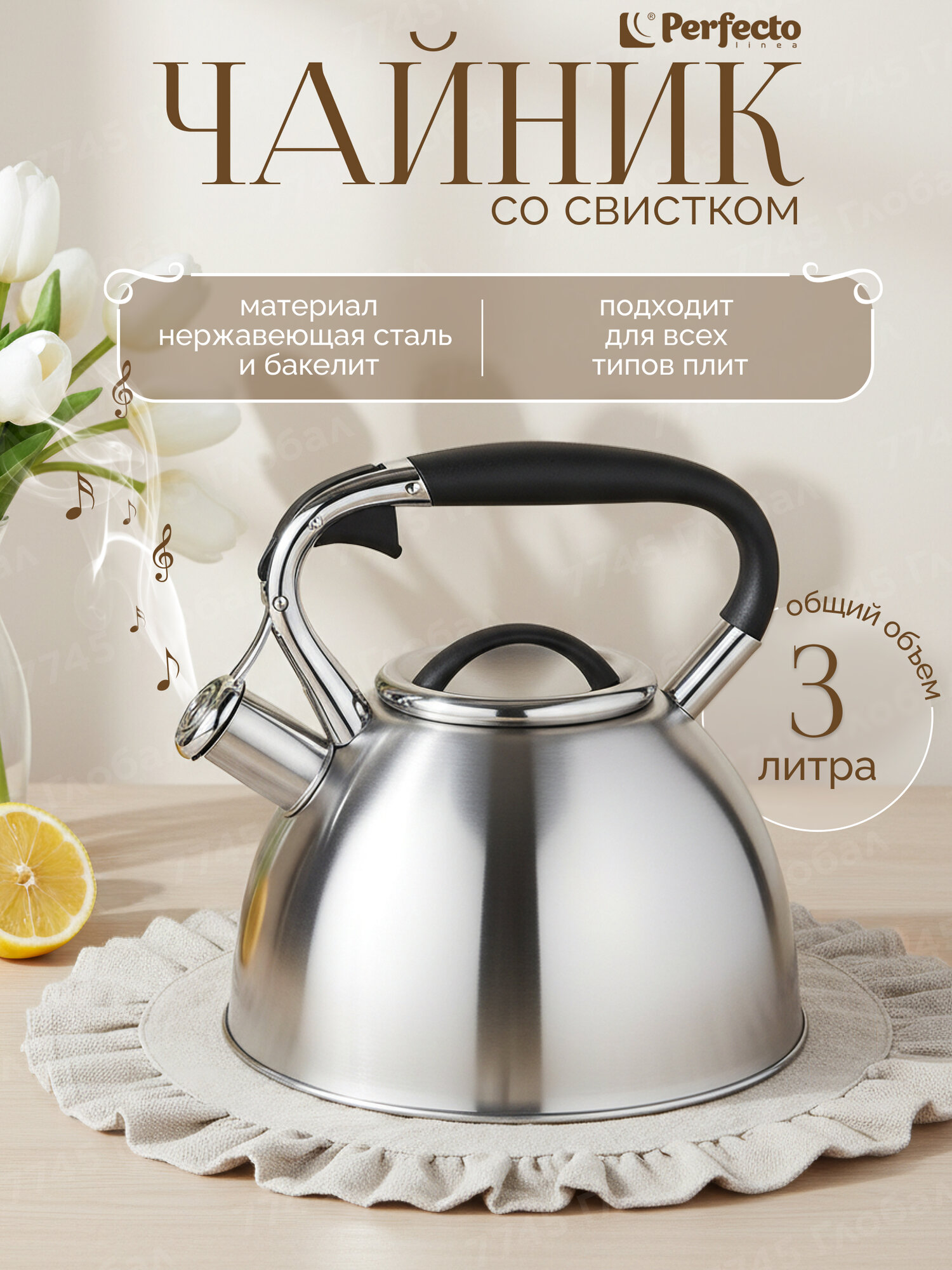 Чайник со свистком PERFECTO LINEA Jasmine 3 л 52-330002 для всех типов плит: сравнение цен, характеристики, фото, актуальное наличие и цены.