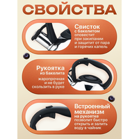Безопасность использования: бакелитовые элементы защищают от ожогов, а встроенный свисток предупредит о закипании.