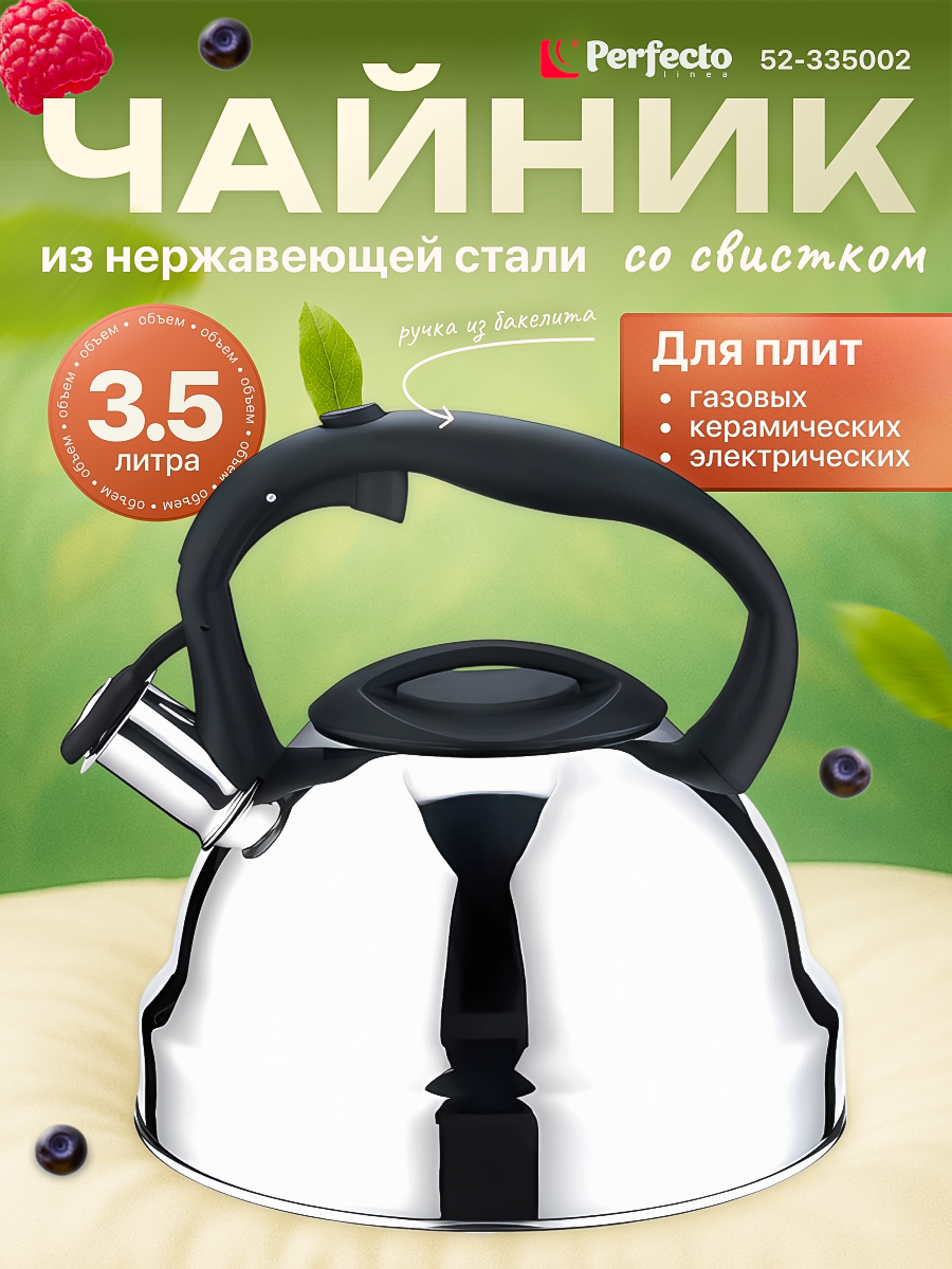 Чайник со свистком Perfecto Linea серии Rich Camomile объемом 3,5 литра – стиль и надежность для вашей кухни!