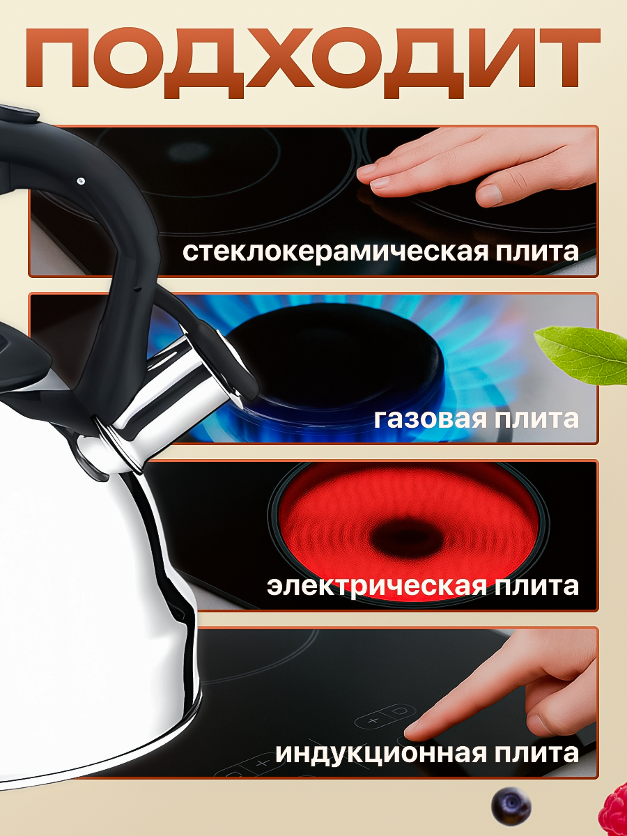 Совместимость: подходит для газовых, электрических, керамических и индукционных плит.