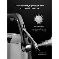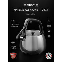 Купить Чайник со свистком Polaris Mela-2,5L объем 2,5 литра для газовой и индукционной плиты, из нержавеющей стали с доставкой по всей России.