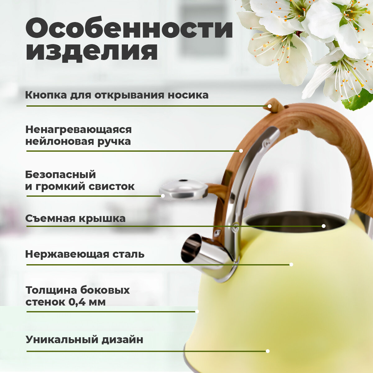 Купить Чайник со свистком для плиты 2,5л Pomi d’Oro P-650208 Napoli с капсульным дном с доставкой по всей России.