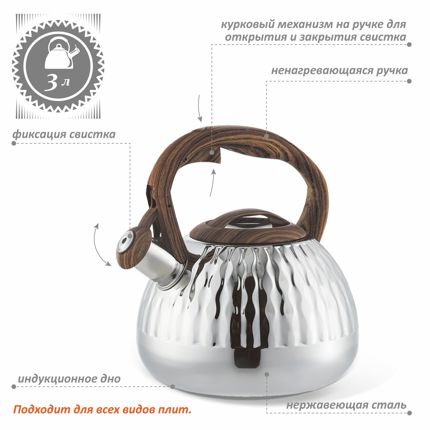 индукционное дно, со свистком, термоизолированная ручка