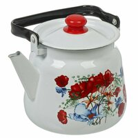 Чайник сталь, эмалированное покрытие, 3.5 л, с кнопкой, Сибирские товары, Цветы красные, белый, С2716.3*95: сравнение цен, характеристики, фото, актуальное наличие и цены.