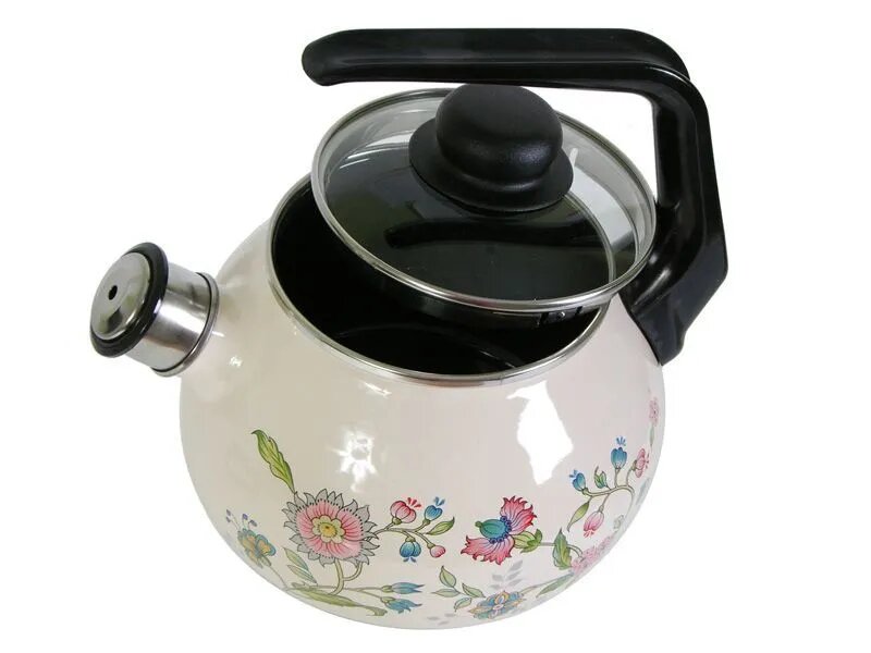 Чайник эмалированный со свистком СтальЭмаль Луговые цветы, 3 л, слоновая кость: сравнение цен, характеристики, фото, актуальное наличие и цены.