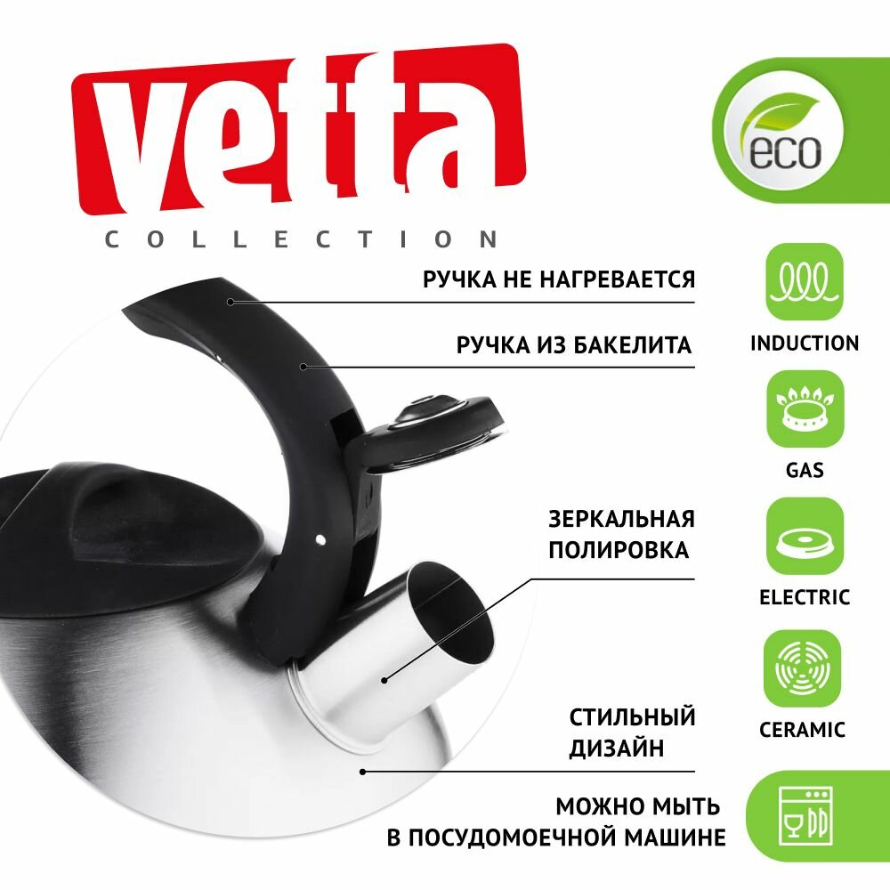 Чайник стальной со свистком 2,3 л VETTA, для всех типов плит, включая индукционные: сравнение цен, характеристики, фото, актуальное наличие и цены.