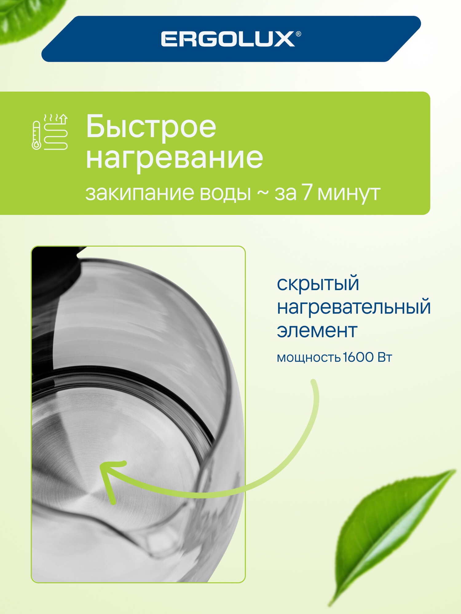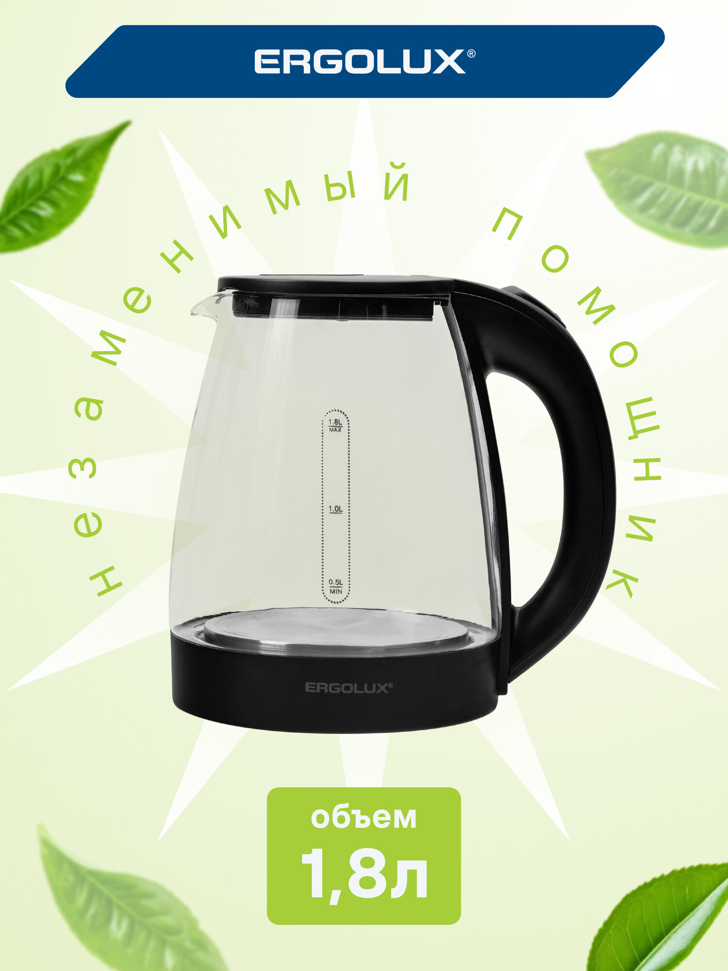 Купить Чайник стеклянный ERGOLUX ELX-KG06-C02 черный промо 1.8л, 1600 Вт с доставкой по всей России.