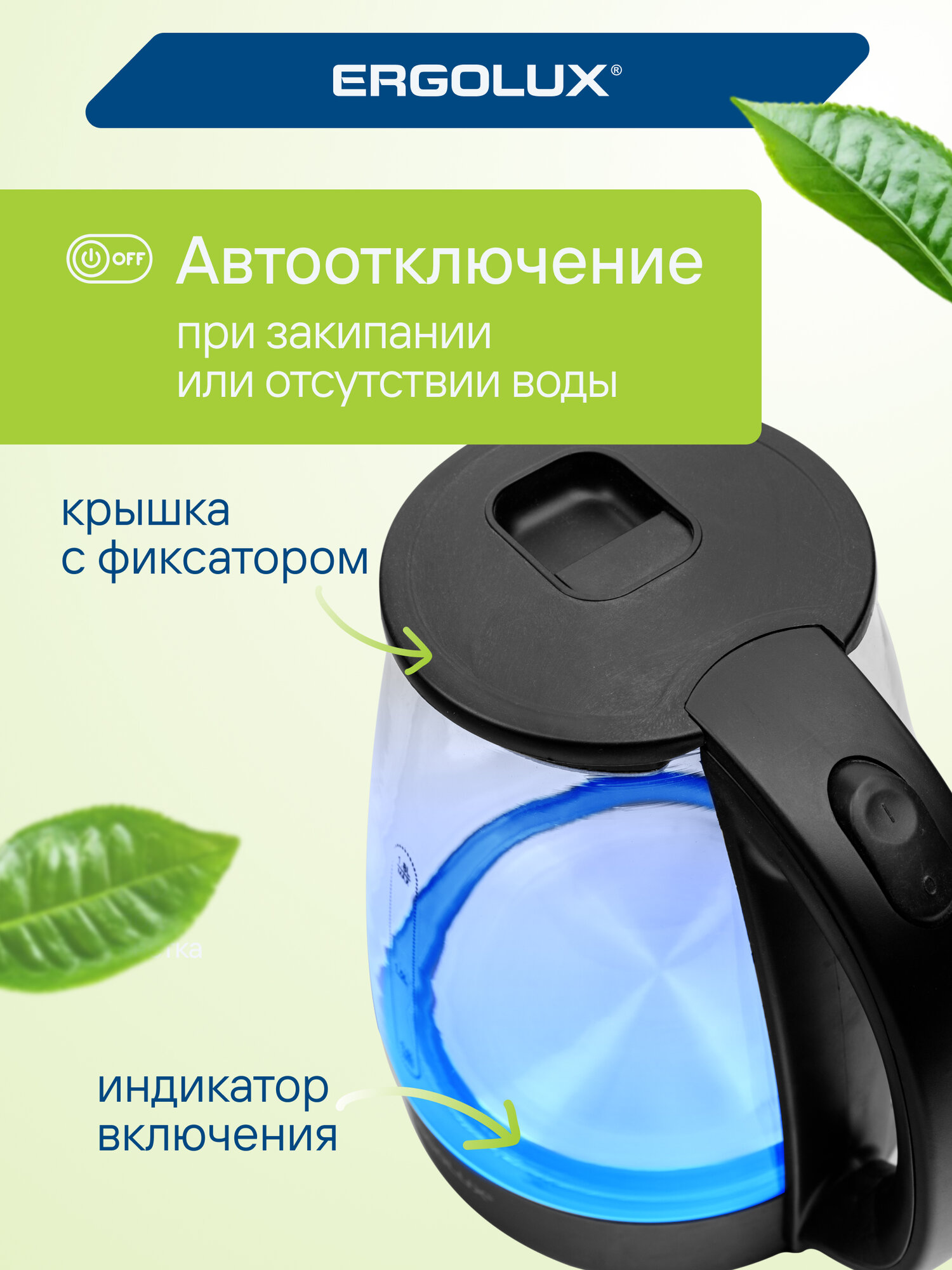 Чайник стеклянный ERGOLUX ELX-KG06-C02 черный промо 1.8л, 1600 Вт: сравнение цен, характеристики, фото, актуальное наличие и цены.