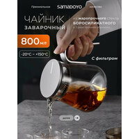 Купить Стеклянный заварочный чайник с фильтром-крышкой SAMADOYO LV-02B 800 мл с доставкой по всей России. Стеклянный заварочный чайник с фильтром-крышкой SAMADOYO LV-02B 800 мл: сравнение цен, характеристики, фото, актуальное наличие и цены.