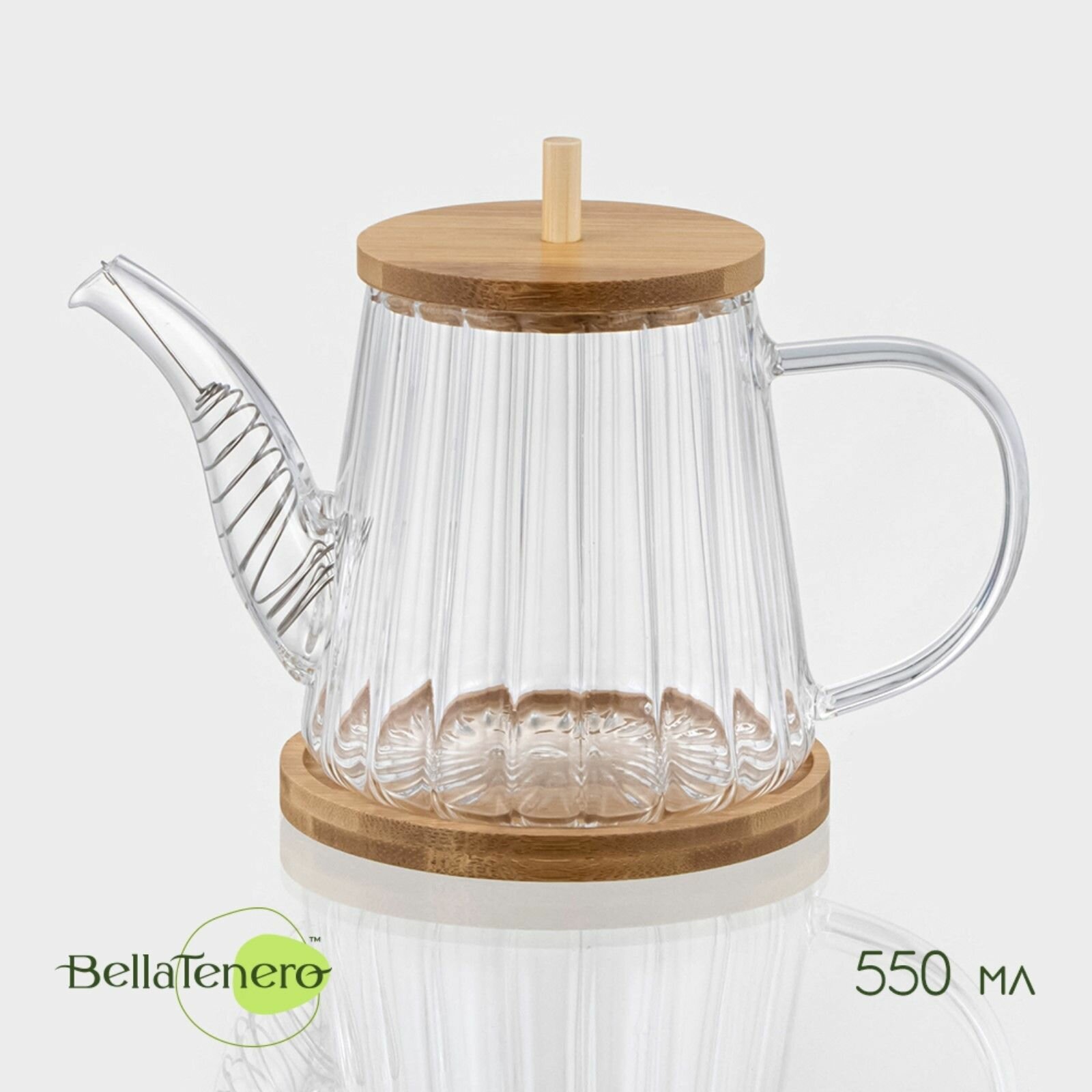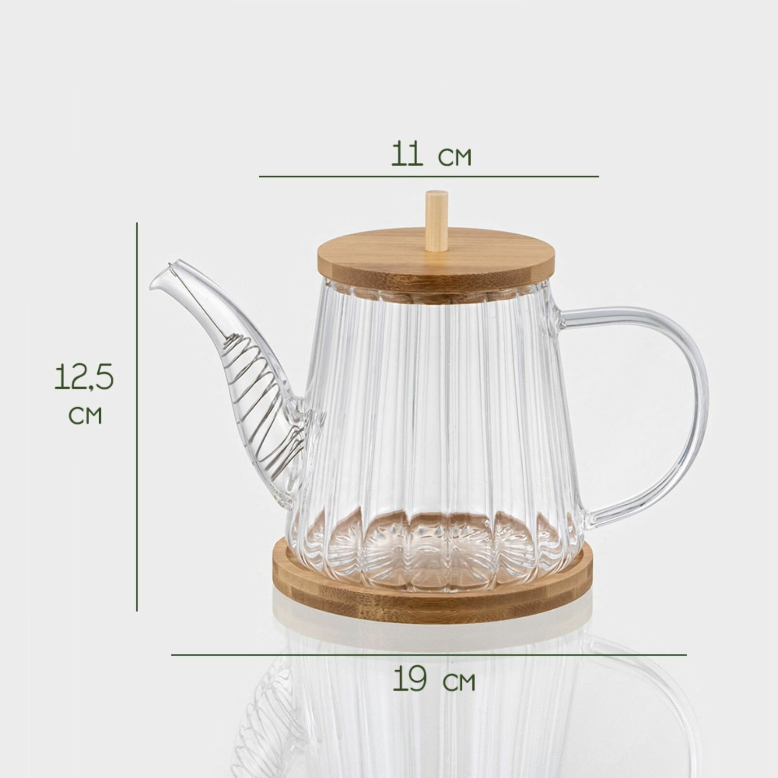Чайник стеклянный заварочный с бамбуковой крышкой и металлическим фильтром «Эко», 550 мл, 19х11х12,5 см: сравнение цен, характеристики, фото, актуальное наличие и цены.