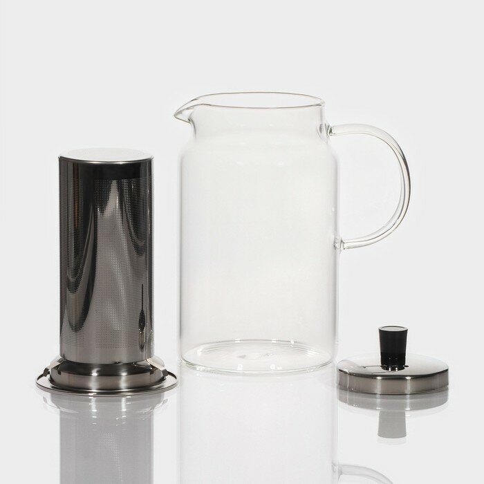 Прочность и безопасность: корпус из стекла не окисляется и не вступает в реакцию с пищевыми жидкостями, а металлическое сито гарантирует прочность и долговечность.