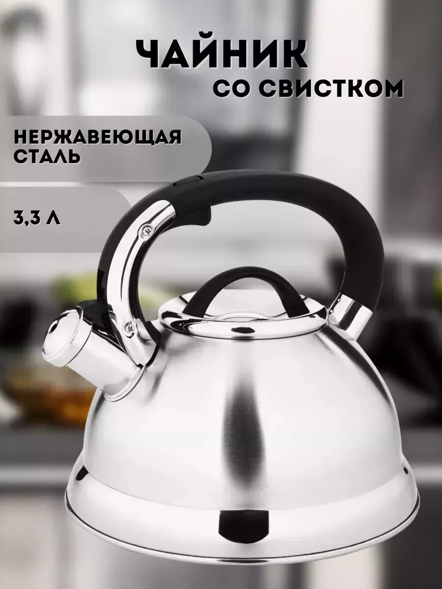 Чайник Сундучок, со свистком, нержавеющая сталь, 3,3л, черный, полированный: сравнение цен, характеристики, фото, актуальное наличие и цены.