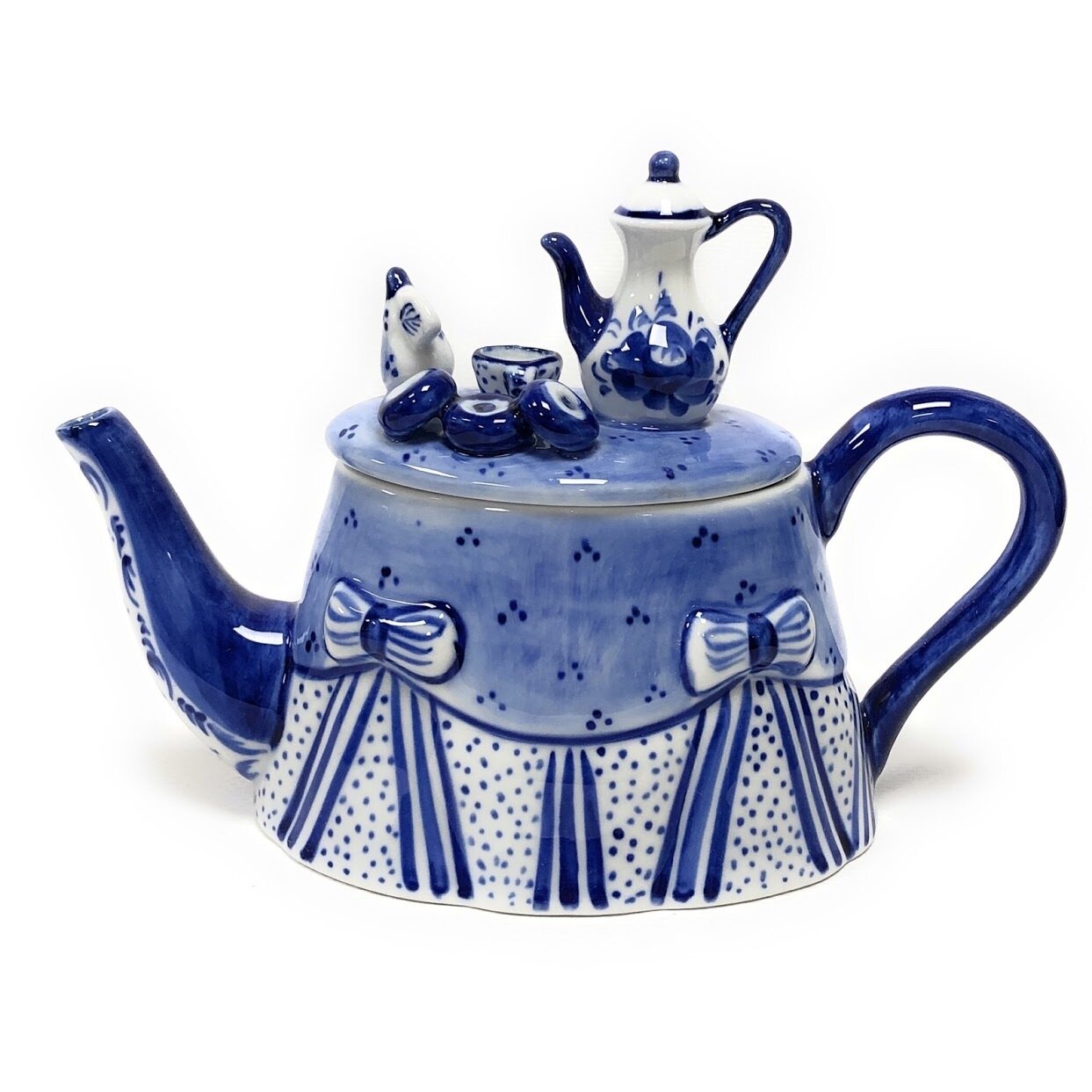 Чайник сувенирный «Стол» 14 см гжель фарфор ручная работа сделано в России