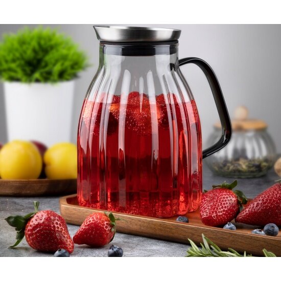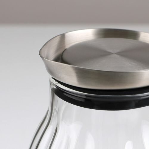 Идеально прилегающая крышка с силиконовым уплотнителем защищает напиток от потери температуры и имеет встроенный фильтр. Крышка выполнена из нержавеющей стали 18/10 и силикона. Форма края носика препятствует образованию подтеков. Цвет стеклянной ручки - темно-серый. Стенки чайника имеют ребристую поверхность. Чашки для комплекта - TR-98195 (можно прибрести отдельно).