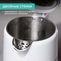 | Особенности | отсек для хранения шнура, индикатор уровня воды, индикация включения, двойные стенки, дисплей, фильтр, сенсорное управление, вращение на 360 градусов |