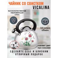 Купить Чайник Vicalina VL-8001, нержавеющая сталь, изменяемый цвет, 3.5л, со свистком с доставкой по всей России.
