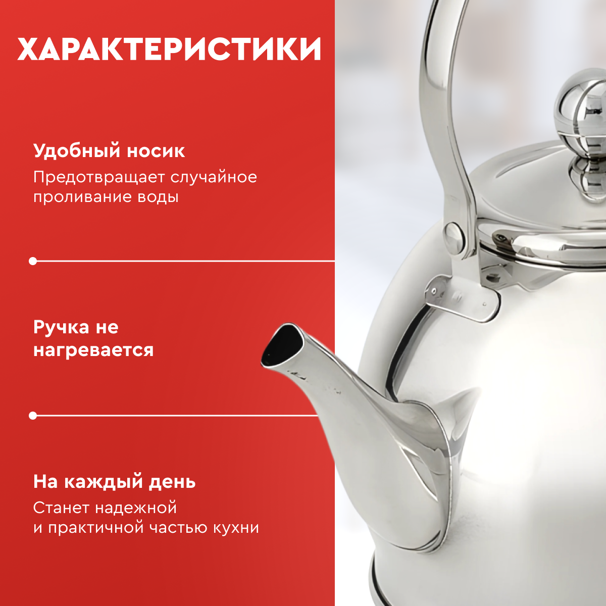 Чайник Webber BE-0597, 1 литр, нержавеющая сталь, съемный фильтр, для всех типов плит, матовая полировка: сравнение цен, характеристики, фото, актуальное наличие и цены.