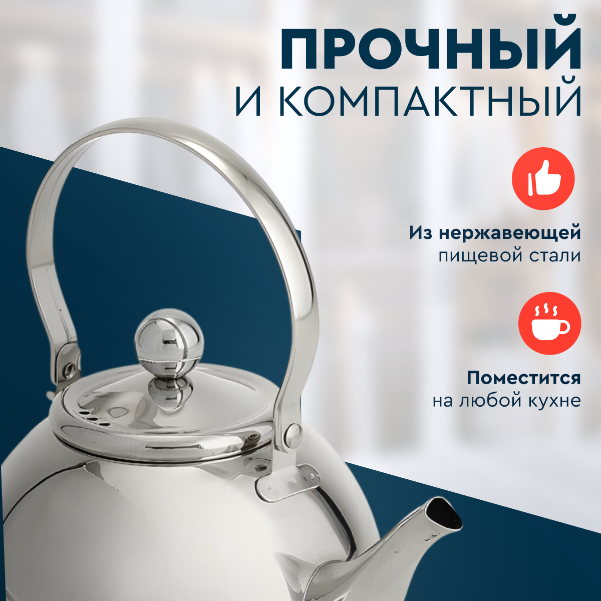 Купить Чайник Webber BE-0597, 1 литр, нержавеющая сталь, съемный фильтр, для всех типов плит, матовая полировка с доставкой по всей России.