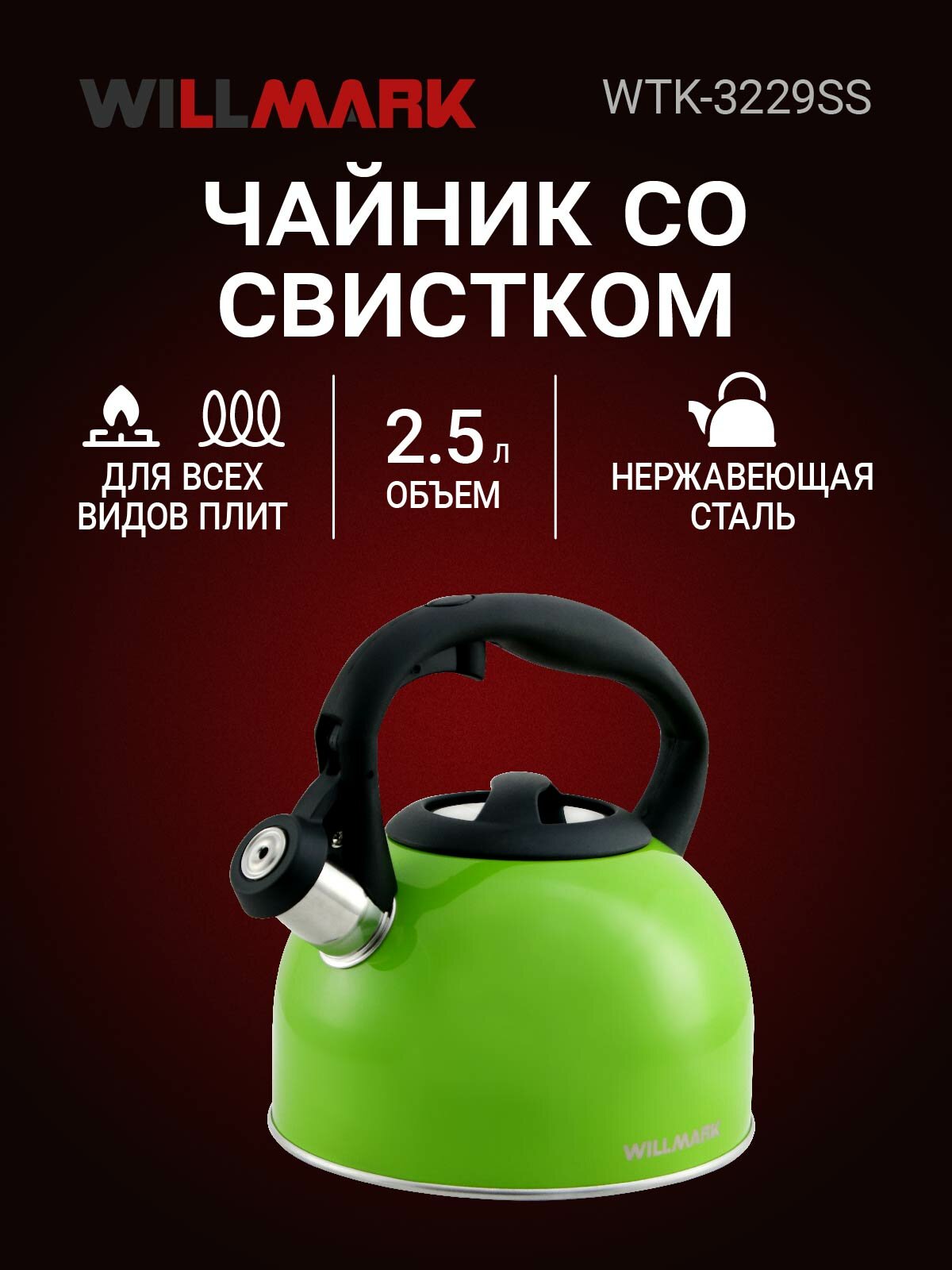 Купить Чайник WILLMARK WTK-3229SS (2,5л, со свистком, с крышкой, нейлоновая ручка, техн. Easy spout open) с доставкой по всей России. Чайник WILLMARK WTK-3229SS (2,5л, со свистком, с крышкой, нейлоновая ручка, техн. Easy spout open): сравнение цен, характеристики, фото, актуальное наличие и цены.