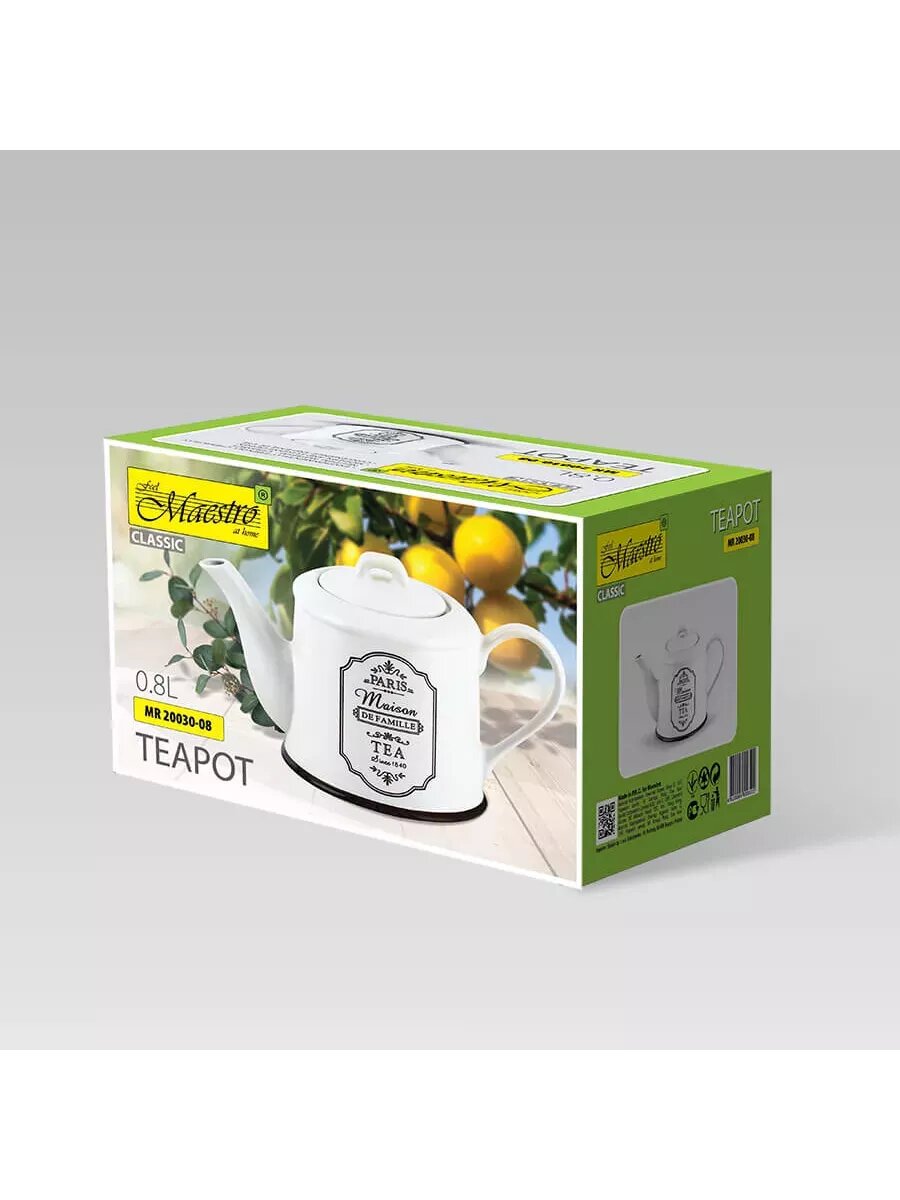 Заварочный чайник объемом 800мл отлично подходит для сервировки стола и станет украшением Вашей кухни, благодаря своему стильному и эргономичному дизайну. Выполнен заварник из высококачественной керамики. Материал экологически чистый, химически нейтральный. Заварочный чайник хорошо сохраняет тепло и его можно легко вымыть в посудомоечной машине.