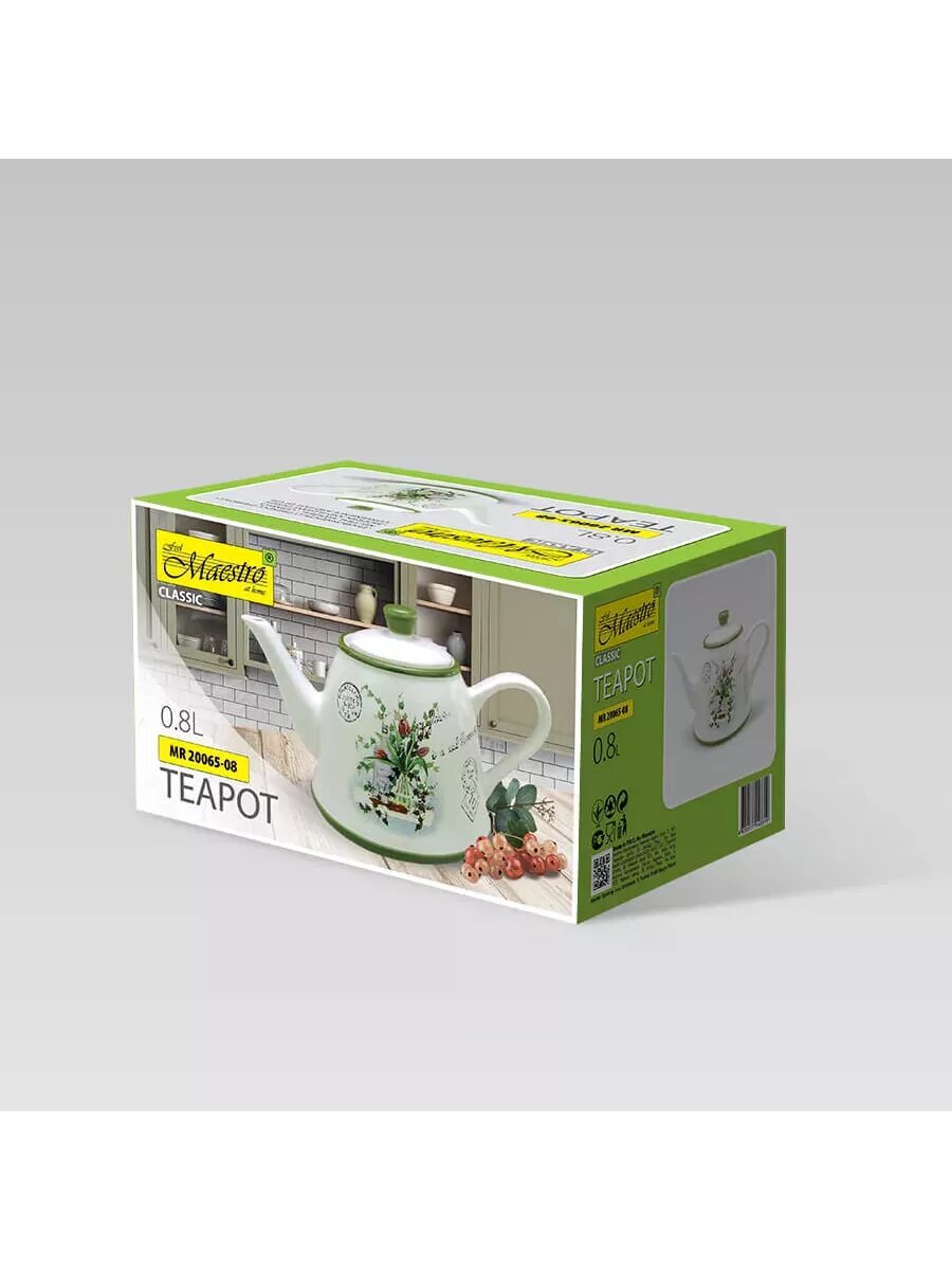 Заварочный чайник объемом 800мл отлично подходит для сервировки стола и станет украшением Вашей кухни, благодаря своему стильному и эргономичному дизайну. Выполнен заварник из высококачественной керамики. Материал экологически чистый, химически нейтральный. Заварочный чайник хорошо сохраняет тепло и его можно легко вымыть в посудомоечной машине