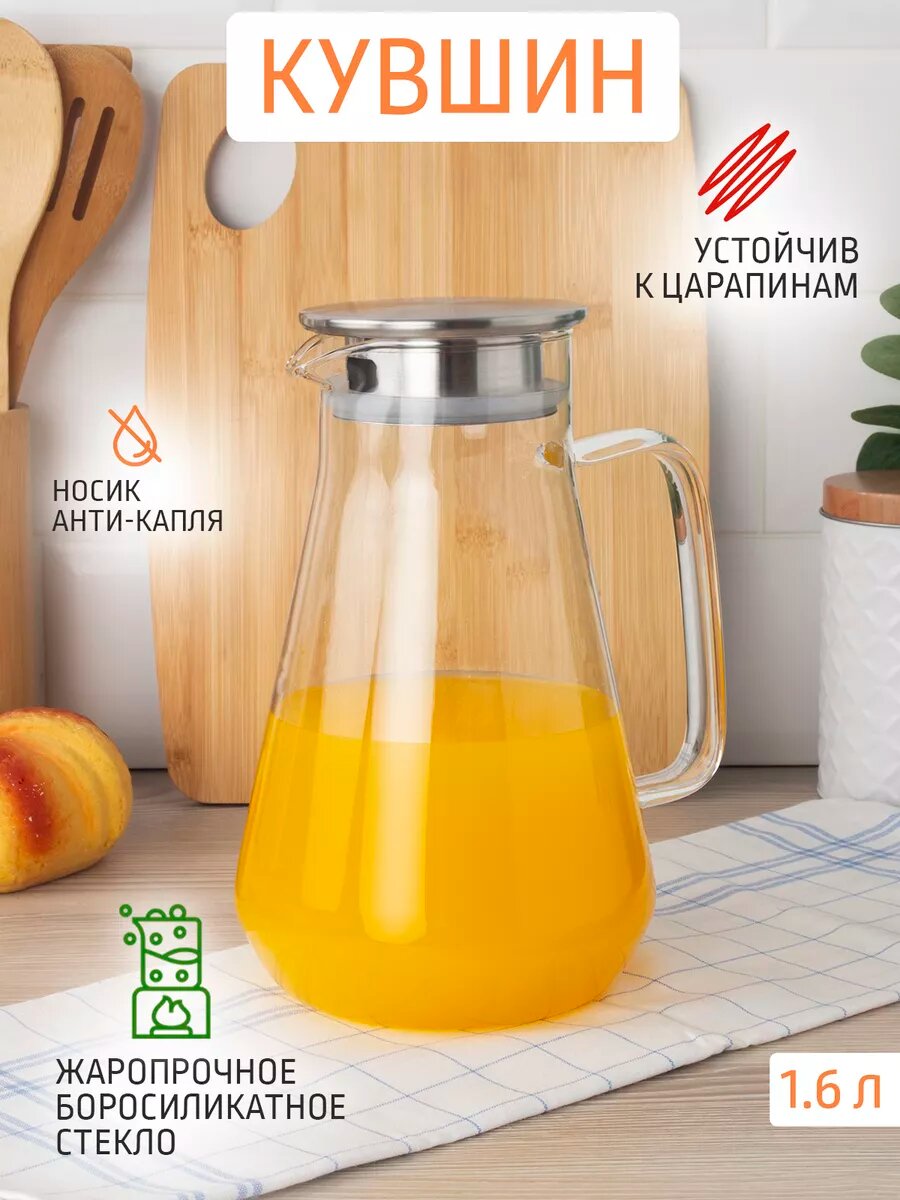 Чайник-кувшин от Astell 1600 мл выполнен из высококачественного термостойкого боросиликатного стекла, устойчив к перепадам температуры, что позволяет использовать его, как емкость для холодных и горячих напитков. Кувшин обладает простой классической формой и лаконичным дизайном. Чайник снабжен фильтр-крышкой, которая полностью выполнена из нержавеющей стали, прочно сидит благодаря силиконовому уплотнителю. В крышке предусмотрено два варианта фильтр-отверстий, если напиток не нуждается в фильтрации или не содержит мелких добавок, то можно использовать сторону с широким разливом, а для более тщательного процеживания, например, компот или чай, используется сторона с фильтр-сито. Носик v-образной формы с конструкцией "антикапля" позволяет разлить напиток по чашкам без случайного проливания. Стеклянная термостойкая ручка не нагревается и не требует использования прихватки. Посуда данной серии подходит для использования в посудомоечной машине.