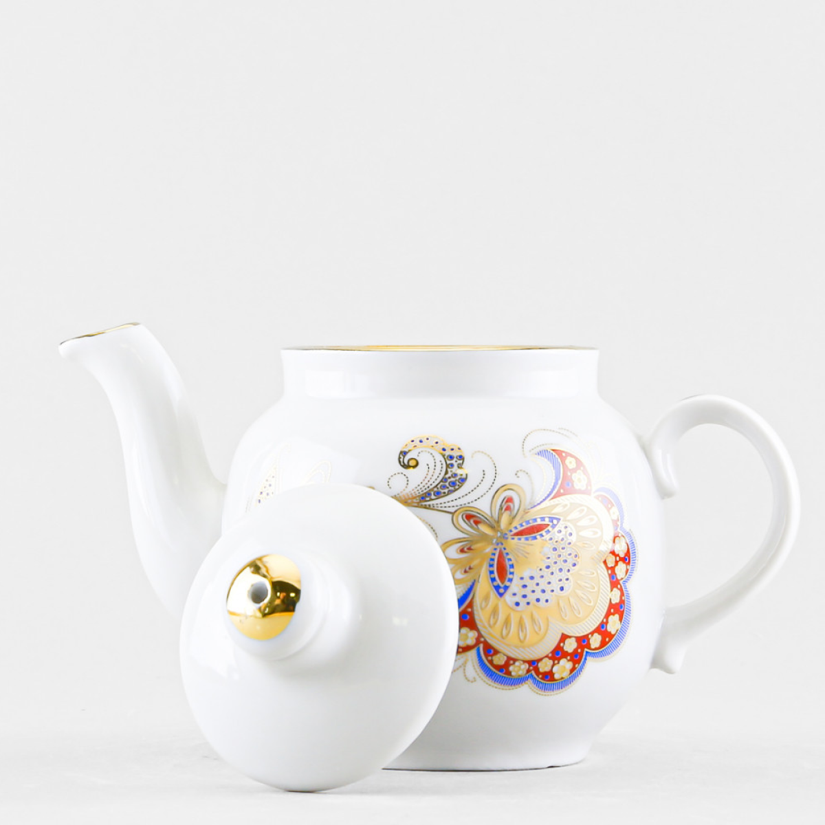 Купить Чайник заварочный, 350 мл. Форма «Янтарь», рисунок «Перо Жар-птицы». Фарфор. Дулёвский фарфоровый завод ДФЗ. с доставкой по всей России.