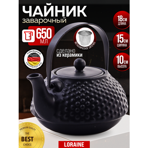 Чайник заварочный 650 мл Loraine керамический, черный, фильтр нержавеющая сталь: сравнение цен, характеристики, фото, актуальное наличие и цены.